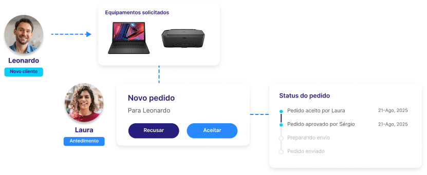 Oferecemos muito mais do que locação de equipamentos — entregamos soluções completas que integram sistemas, automatizam fluxos e transformam a experiência em outsourcing de tecnologia. Nosso dinamismo é o motor que nos impulsiona a inovar constantemente, antecipar tendências e oferecer serviços de qualidade, com total disponibilidade e colaboração.